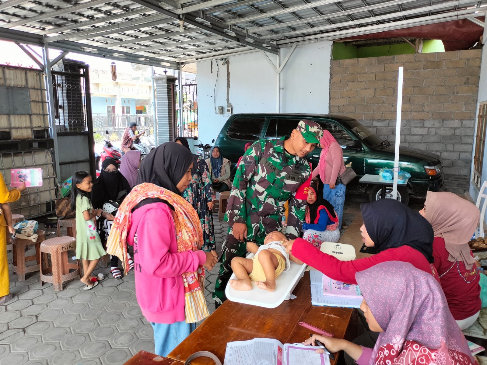 Lumajang, Dalam rangka mendukung kesehatan ibu dan anak, Babinsa Jatigono Koramil 0821-13/Kunir, Sertu Tiar Affandi, melaksanakan pendampingan pada kegiatan Posyandu Gerbangmas Kamboja yang digelar di Dusun Sukorame RT 028 RW 007 Desa Jatigono, Kecamatan Kunir, Kabupaten Lumajang, Jawa Timur, Senin (21/10/2024).