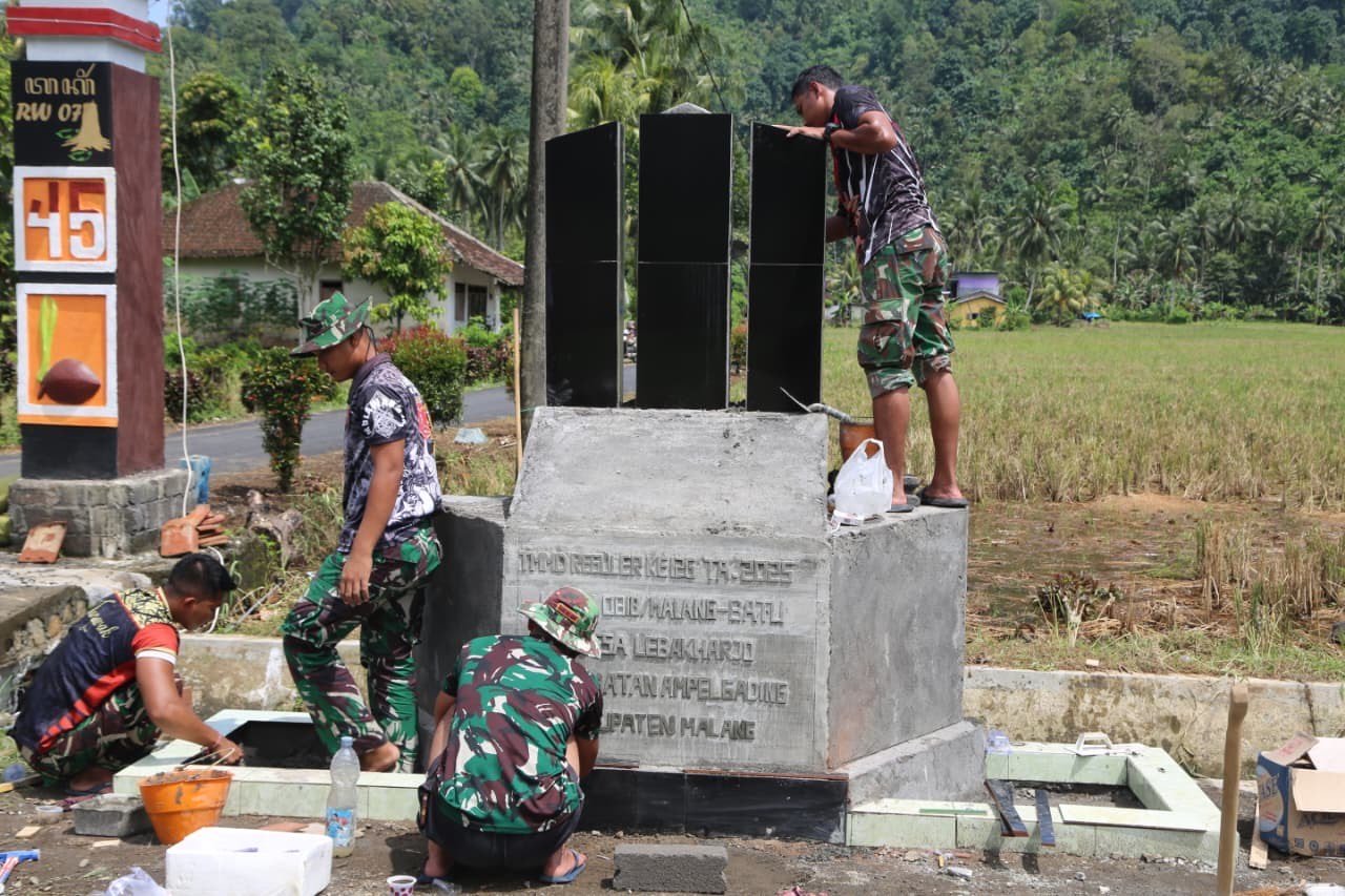 Malang, TMMD ke 126 – Semangat pengabdian prajurit TNI dalam program TNI Manunggal Membangun Desa (TMMD) ke-126 Kodim 0818/Malang-Batu kembali terlihat di Kampung Takir, Jalan Penggalang Terap, Desa Lebakharjo, Kecamatan Ampelgading. Sejumlah personel Satgas TMMD, dipimpin oleh Sertu Akusti Marga dari Yonzipur 5, tampak teliti dan penuh dedikasi saat mengerjakan pembuatan prasasti sebagai tanda berakhirnya kegiatan fisik TMMD di wilayah tersebut.