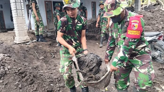 Di tengah cuaca yang tidak menentu serta kondisi medan yang berat, para prajurit tetap bekerja tanpa mengenal lelah. Mereka bahu-membahu membersihkan material sisa erupsi sebagai bentuk tanggung jawab moral dan sosial kepada masyarakat yang tengah berjuang memulihkan kehidupan sehari-hari.
