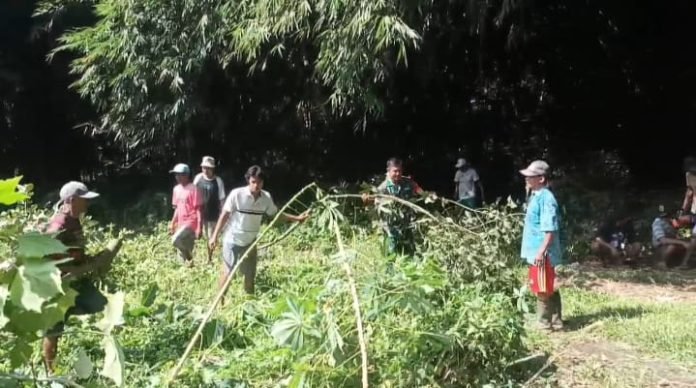 Lumajang, Salah satu wujud nyata kearifan lokal yang diwariskan dari generasi ke generasi Babinsa Pulo Koramil 0821-10/Tempeh, Serda Budi Santoso, bersama warga melaksanakan kerja bakti pembersihan jalan di Dusun Bedok 1 RT 007 RW 005, Desa Tempeh Lor, Kecamatan Tempeh, Kabupaten Lumajang. Pada Rabu (18/9/2024).
