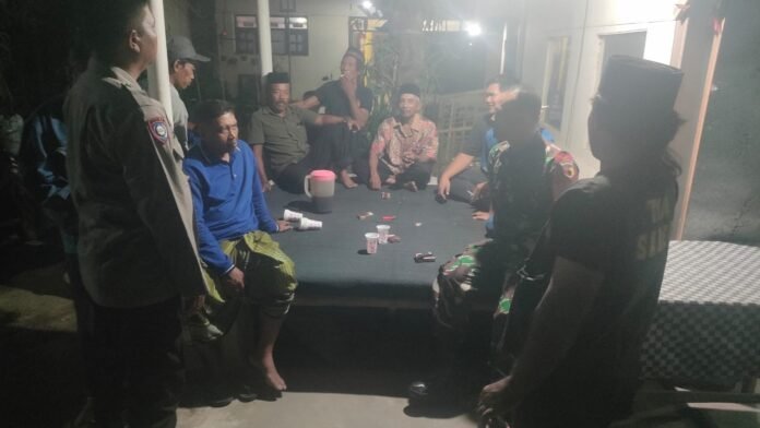 Lumajang, Upaya menjaga stabilitas keamanan dan ketertiban lingkungan. Babinsa Kedungrejo Koramil 0821-16/Rowokangkung, Sertu Riono Asnan, menggandeng anggota Linmas Desa Kedungrejo dalam kegiatan sambang Pos Keamanan Lingkungan (Poskamling) di Dusun Pondokasri RT 016 RW 009, Desa Kedungrejo, Kecamatan Rowokangkung, Kabupaten Lumajang, Jawa Timur, pada Sabtu malam (26/12/2025).