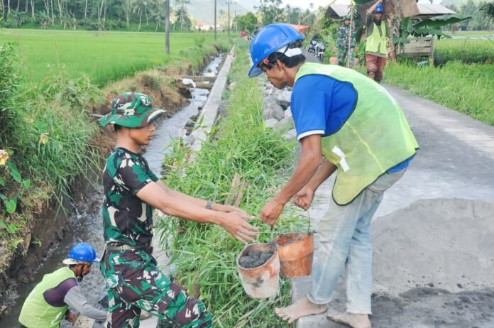 Satgas TMMD ke-126 Kodim 0818/Malang Bersama Warga Tingkatkan Saluran Irigasi di Desa Lebakharjo