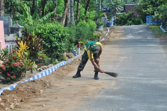 Malang, TMMD ke 126 – Kepedulian terhadap kebersihan lingkungan ditunjukkan oleh personel Satgas TNI Manunggal Membangun Desa (TMMD) ke-126 Kodim 0818/Malang-Batu, yang melaksanakan pembersihan jalan raya dari sisa tanah galian di Dusun Sukomaju B, Desa Lebakharjo, Kecamatan Ampelgading, Kabupaten Malang, Jumat (10/10/2025).