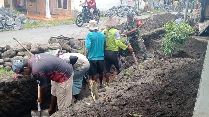 Semangat Kebersamaan Babinsa Dan Warga Warnai Pembangunan Saluran Air di Dusun Besukan