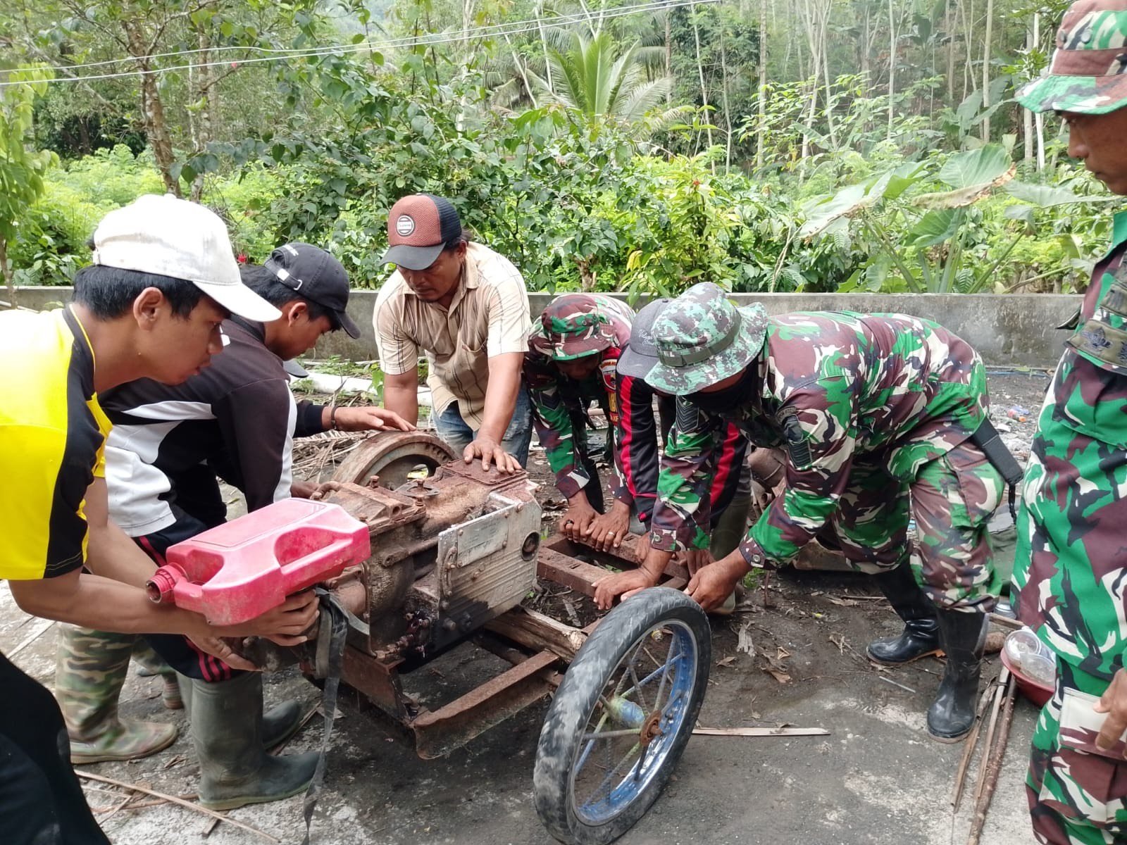 Mesin Dongfeng tersebut merupakan salah satu peralatan penting bagi warga, terutama yang digunakan dalam menunjang pekerjaan dan kebutuhan operasional di kawasan terdampak bencana. Namun, letaknya yang berada di zona rawan berpotensi menimbulkan kerusakan apabila situasi kembali memburuk. Menyadari risiko itu, Serma Rusmanu bersama warga segera mengambil langkah antisipasi untuk memindahkannya ke tempat yang lebih aman.
