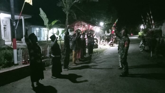 Lumajang, Dalam rangka mempersiapkan Lomba Sistem Keamanan Lingkungan, Babinsa Tegalbangsri Koramil 0821-06/Ranuyoso, Sertu Mujahidin, melaksanakan patroli malam sekaligus memberikan pembekalan kepada anggota Satgas Keamanan Desa (SKD) dan Linmas, di Dusun Timur Curah RT 002 RW 001 Desa Tegalbangsri Kecamatan Ranuyoso Kabupaten Lumajang, Jawa Timur, pada Senin (18/8/2025) malam.