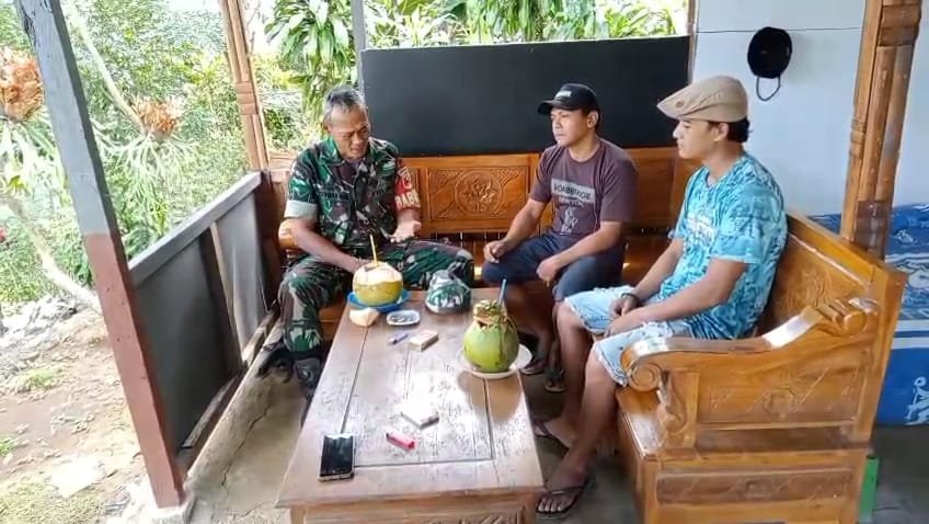 Lumajang, Dalam rangka memperkuat komunikasi sosial serta meningkatkan kewaspadaan masyarakat terhadap potensi bencana alam, Babinsa Sidomulyo Koramil 0821-14/Pronojiwo, Serma Ikhwanurudin, melaksanakan silaturahmi dengan Ketua Kelompok Sadar Wisata (Pokdarwis) Gua Tetes, Agus Supriyadi. Kegiatan ini berlangsung di Dusun Krajan RT 008 RW 006 Desa Sidomulyo, Kecamatan Pronojiwo, Kabupaten Lumajang, Jawa Timur, pada Jumat (11/7/2025).