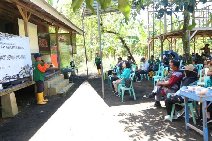 Sebagai narasumber utama, Plt. Kepala Bidang Kesehatan Hewan, Ibu Lucia Endah Sukesi, menyampaikan pentingnya deteksi dini dan penanganan cepat terhadap penyakit hewan menular seperti PMK (Penyakit Mulut dan Kuku), LSD (Lumpy Skin Disease), serta antraks. Ia juga menekankan pentingnya menjaga kebersihan kandang, pemberian pakan bergizi, dan vaksinasi rutin agar ternak tetap sehat dan produktif.