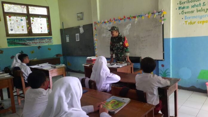 Lumajang – Dalam upaya membentuk karakter generasi muda yang berakhlak dan berjiwa nasionalis, Babinsa Wates Wetan Koramil 0821-06/Ranuyoso, Kopka Muhammad Sofyan Hariyanto, melaksanakan kegiatan pemberian wawasan kebangsaan (Wasbang) serta edukasi tentang bahaya perundungan (bullying) kepada siswa SDN Wates Wetan 01, Kecamatan Ranuyoso, Kabupaten Lumajang, Jawa Timur, Kamis (12/2/2026).