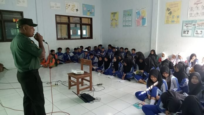 Lumajang, Dalam rangka menumbuhkan semangat cinta tanah air sekaligus mencegah pengaruh negatif narkoba di kalangan pelajar, Babinsa Randuagung Koramil 0821-07/Randuagung, Serda Mista Kusnadi, memberikan materi wawasan kebangsaan dan bela negara kepada siswa-siswi Madrasah Tsanawiyah (MTs) Darussalam Randuagung, Desa Randuagung, Kecamatan Randuagung, Kabupaten Lumajang, Jawa Timur, pada Selasa (19/8/2025).