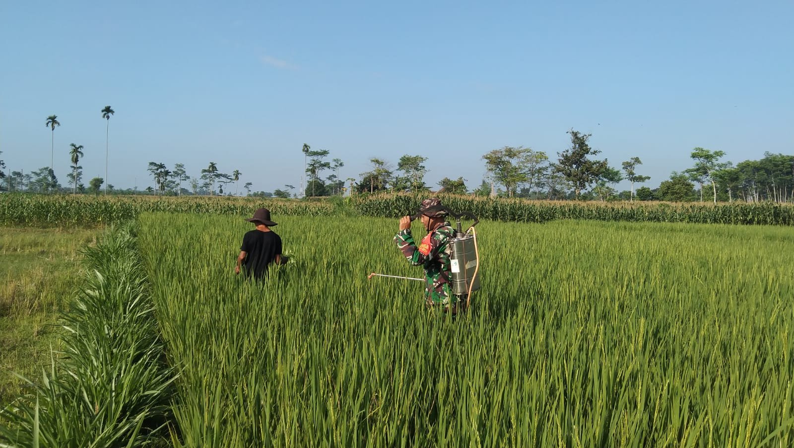 “Penyemprotan ini guna mengantisipasi hama ulat, hama wereng maupun walang sangit yang dapat menghambat pertumbuhan padi, Selain itu juga untuk memberikan kesuburan terhadap batang padi dan menghindari padi dari hama penyakit,” kata Serka Zainul Arifin