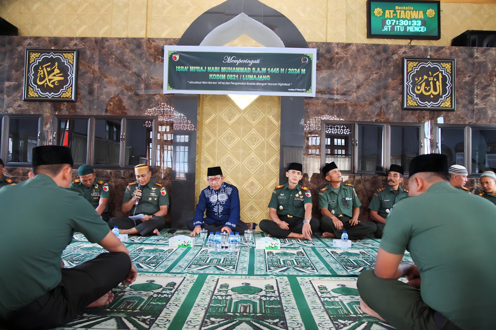 Kegiatan dengan Tema “Aktualisasi Nilai-Nilai Isra Mi'raj dan Pengamalan Ibadah di Tengah Terpaan Digitalisasi” dihadiri Dandim 0821/Lumajang Letkol Czi Gunawan Indra Y. T., S.T., M.M., Perwira, Bintara, Tamtama dan PNS Kodim 0821/Lumajang dengan penceramah Ustadz Suharyo, AP., S.H.