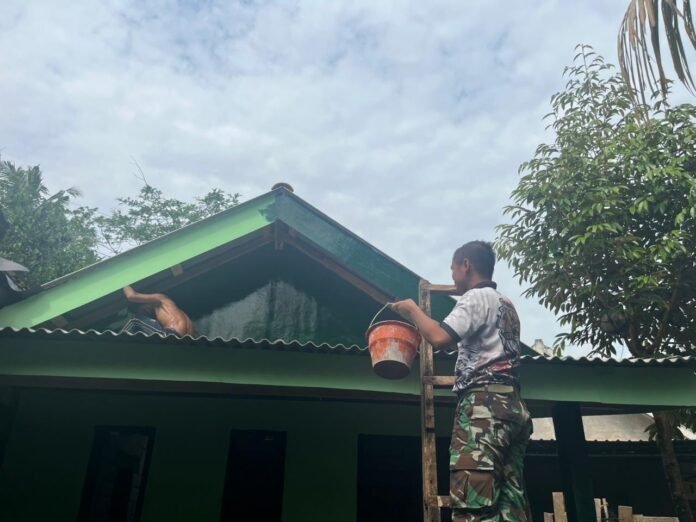 Dengan penuh semangat, Serda Agung bersama rekan-rekannya dari Satgas TMMD bahu-membahu menyelesaikan tahap akhir renovasi rumah Abdul Rokim yang sebelumnya tidak layak kini berdiri kokoh, menjadi simbol nyata kepedulian TNI terhadap kesejahteraan masyarakat di pelosok desa.
