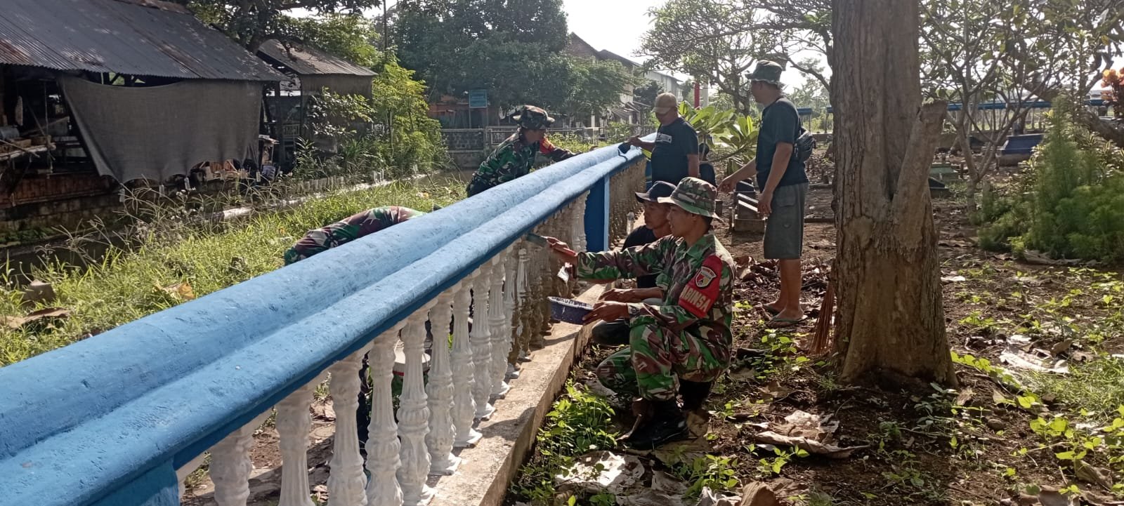 TNI dan Warga Kompak, Bersihkan dan Percantik Pagar TPU Kebonagung