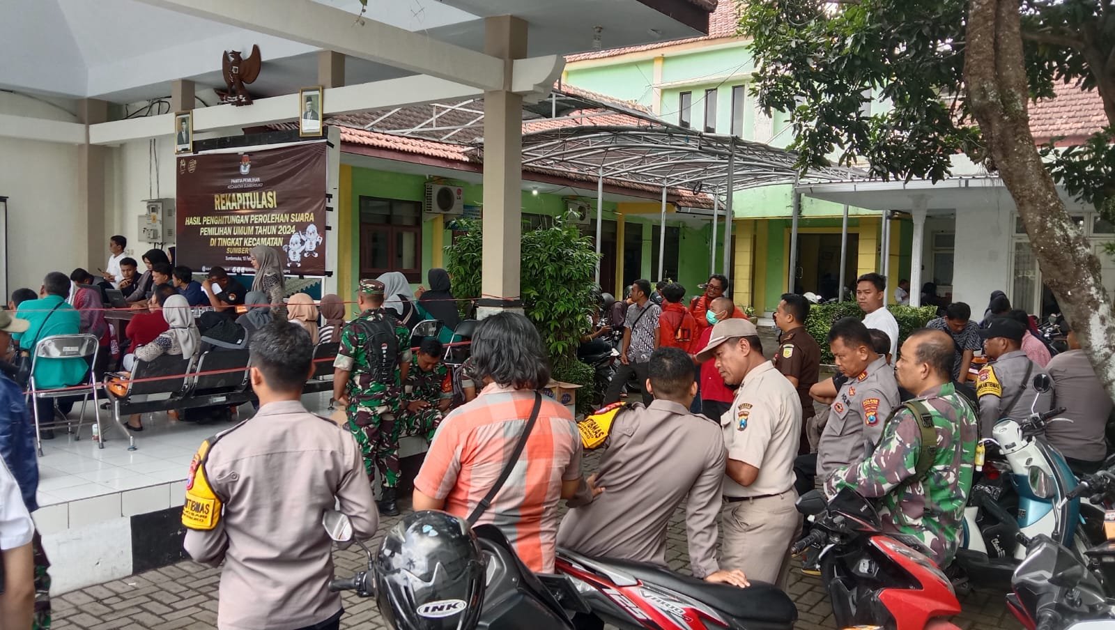 Lumajang, Guna menciptakan hasil suara Pemilu 2024 yang transparan, Personel TNI Koramil 0821/19 Sumbersuko, melaksanakan pengamanan rekapitulasi hasil penghitungan suara untuk tingkat PPK Kecamatan, bertempat di Pendopo Kecamatan Sumbersuko Kabupaten Lumajang, Jawa Timur, Senin (26/2/2024).