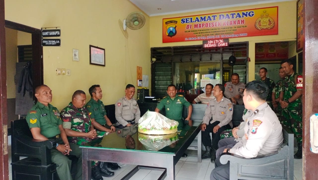 Lumajang, Personel TNI Koramil 0821/05 Klakah Lumajang Jawa Timur, membuktikan sinergitas dengan kepolisian tetap erat dan kuat, Selasa (2/7/2024)