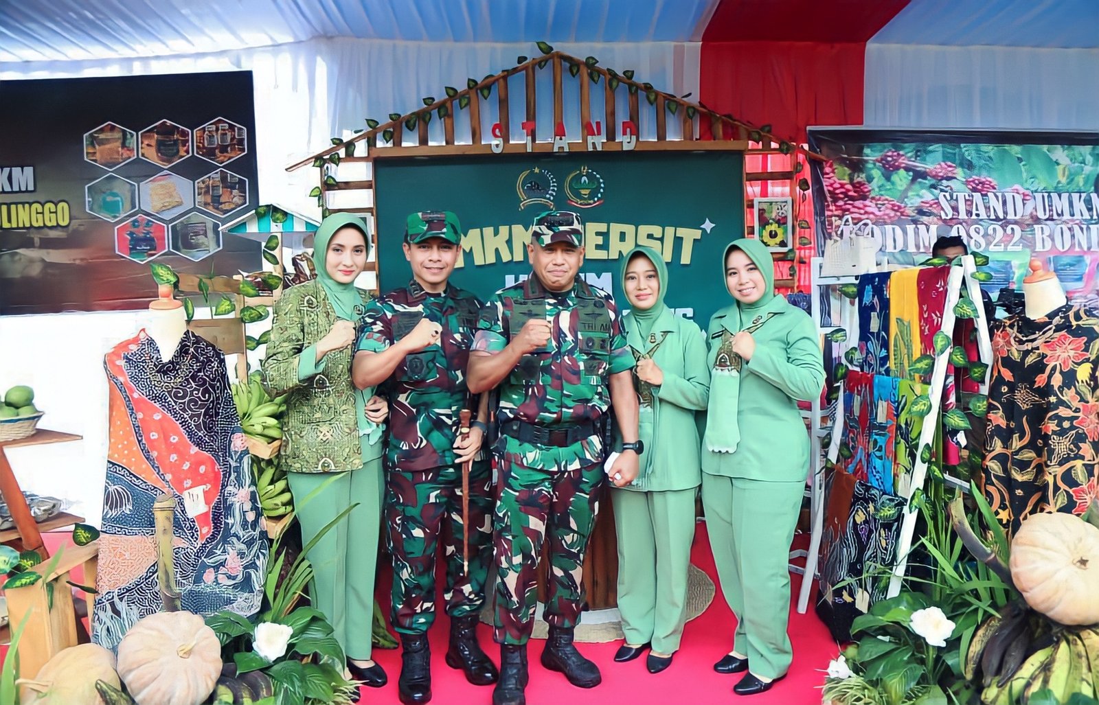 Stand UMKM yang ditampilkan memamerkan beragam produk unggulan, mulai dari kerajinan tangan, batik, hasil pertanian lokal, aneka olahan makanan, hingga karya kreatif dari komunitas perempuan dan keluarga besar TNI.