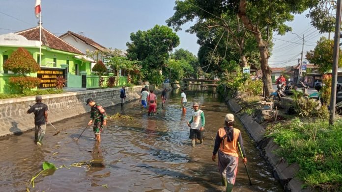 Lumajang, Babinsa Tekung Koramil 0821/15 Tekung, Serka Hariyanto, bersama warga Dusun Megarsari, Desa Tekung, Kecamatan Tekung, Kabupaten Lumajang, Jawa Timur, melaksanakan kegiatan kerja bakti pembersihan aliran Sungai Repeh pada Sabtu (8/6/2024).