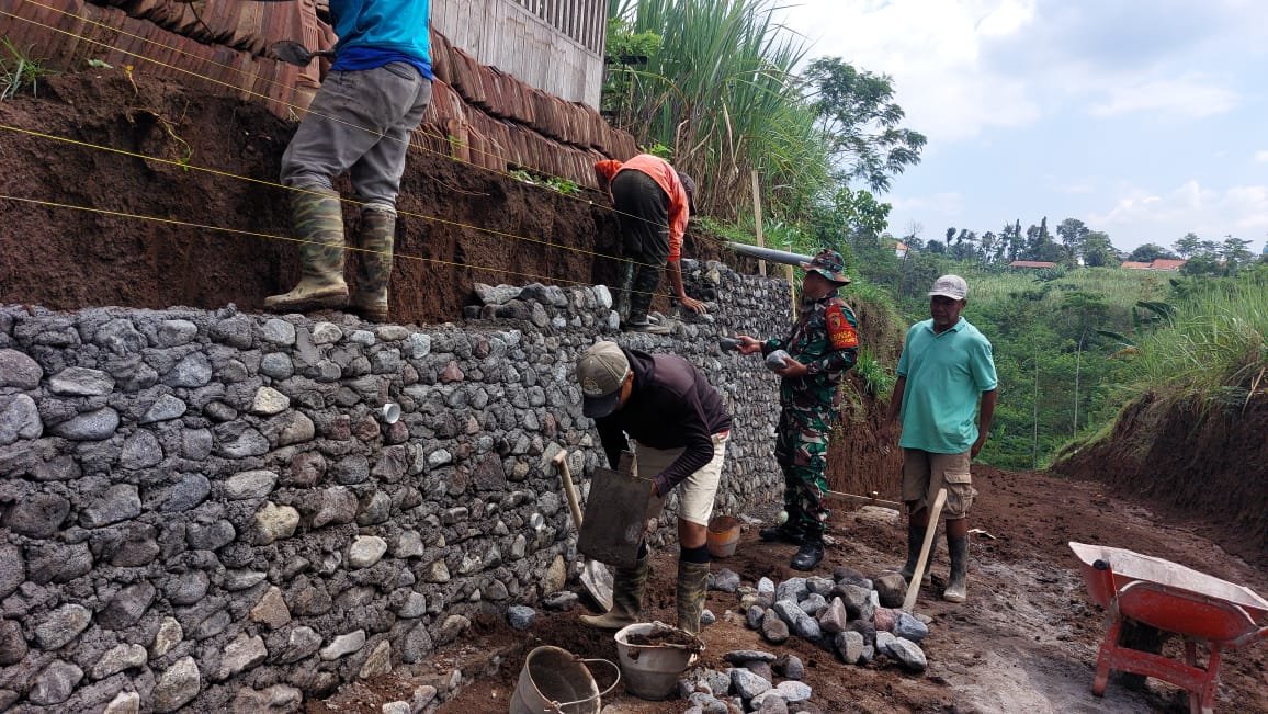 Wujud Kepedulian, Babinsa Kedawung Bantu Warga Bangun Talud Penahan Tanah
