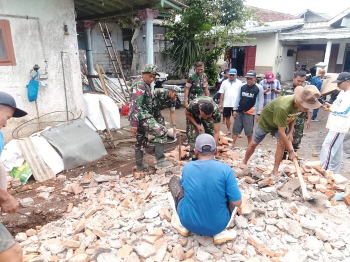 Lumajang, Dalam upaya meningkatkan kesejahteraan dan memperkuat kemanunggalan TNI dengan rakyat, Babinsa Ranuyoso Koramil 0821-06/Ranuyoso, Kopka Suleman, bersama warga melaksanakan kerja bakti renovasi rumah milik Ibu Siwa (68), seorang janda lanjut usia kurang mampu di Dusun Krajan RT 004 RW 001, Desa Ranuyoso, Kecamatan Ranuyoso, Kabupaten Lumajang, Jawa Timur, pada Senin (20/10/2025).