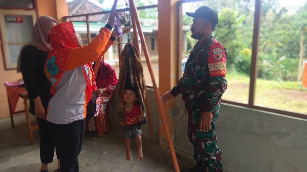 Wujudkan Balita Sehat, Babinsa Dampingi Bidan Desa dalam Kegiatan Pelayanan Posyandu di Tamanayu